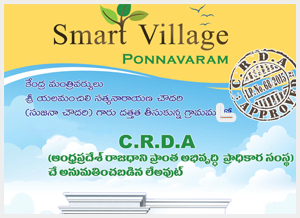 Spread over 14 Acres of Prime Landscape , A Smart Village lets you chose from a well- planned selection of plots at Ponnavaram Village situated in a Serene living ambience , this exclusive Residential Project has close proximity to the AP’s Capital AMARAVATHI, Pharma -Hub , Bio-tech , Plastic , Packaging , IT , ITES , Two International Air Ports , AIMS , Tourism Hub , Manufacturing , Production , Processing , Business , Commercial Hub , Agri processing , Electronics , Auto , Temple Tourism , Schools Culture , Major Irrigation Hub , Garments , Manufacturing Hubs , Logistic Park , Value Added Financial Hub , FTZ , SEZ Zone , Aerospace , Fabrication Hub , Rubber and Fabrication Metals , Raw Material Hub , Entertainment Knowledge Centre , Agro Industrial ,Hardware, Green Industries, Agri industries , High – Speed Trains , Eight lane Roads , Metro rail , Port Connectivity , Road Circuits , Water circuits and Worlds Class Outer Ring Roads.